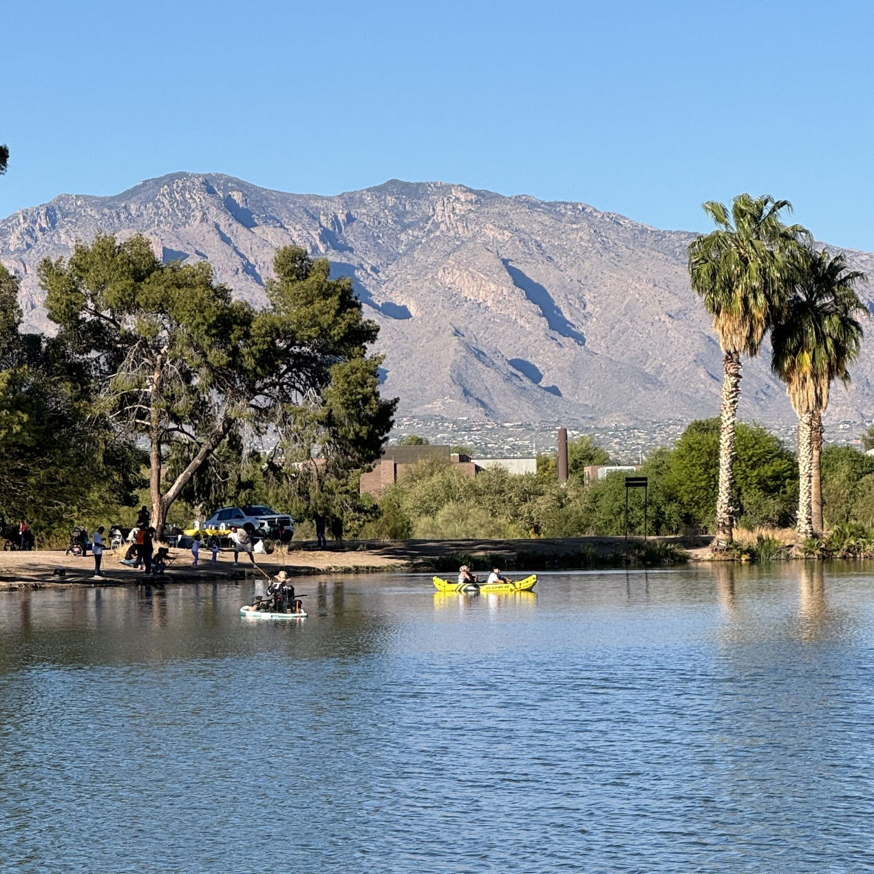 Danny Lopez Regional Park is a unique urban water park that offers boating, birding, fishing, and much more in two large Tucson lakes. The 13-acre Silverbell Lake is used for both recreational boating and community fishing. The smaller Archer Lake is reserved exclusively for remote-controlled model boats. The lakes are filled with reclaimed water from the nearby Sweetwater treatment facility. The cool, clear lake water attracts a variety of birdlife, from wintering ducks to great blue herons.
