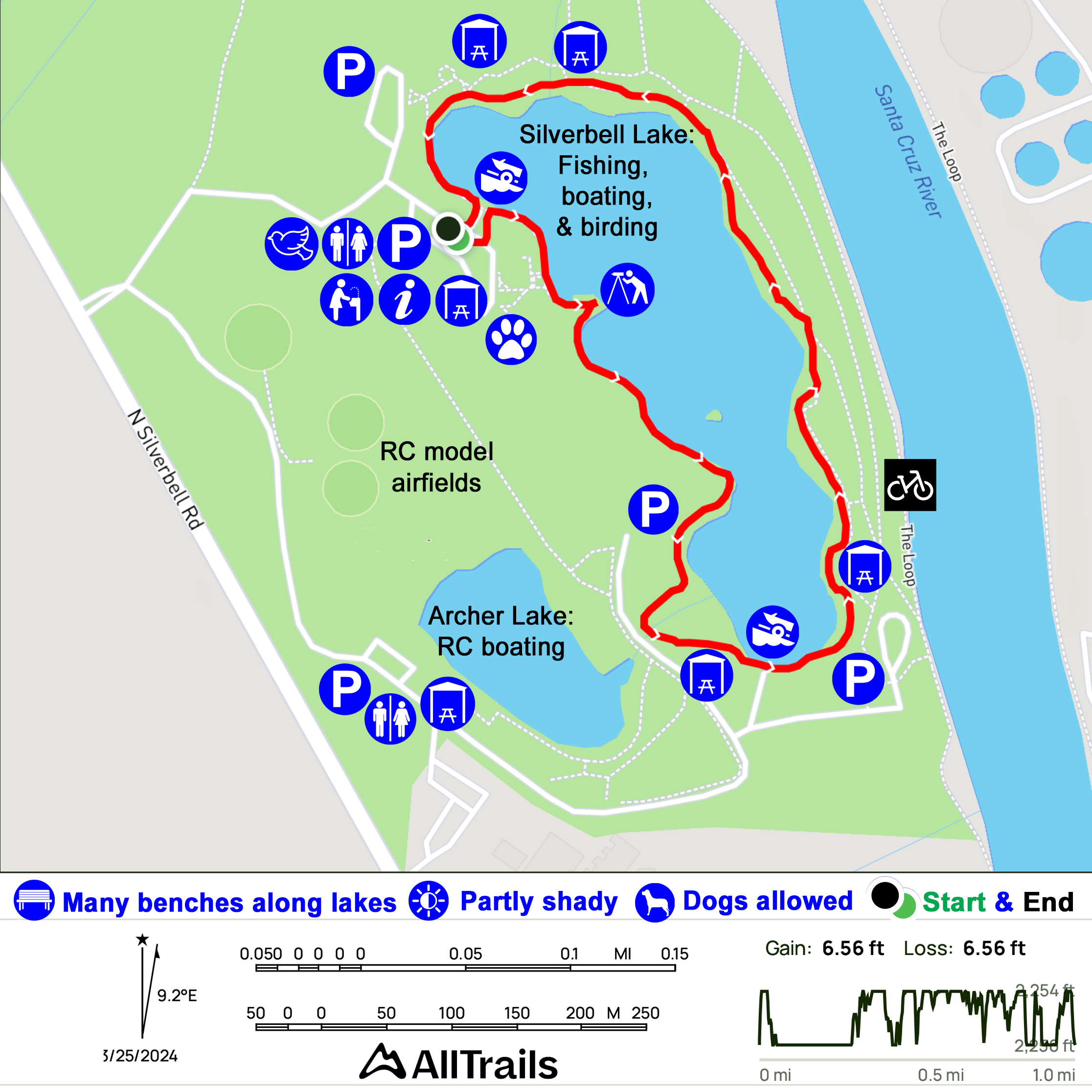 Other park attractions include a circular airfield for remote-controlled model aircraft, a 1-acre lighted dog park with a fountain, a scrambling area, and a shade ramada. These park assets have the drawback of noise associated with barking dogs and gas-powered motors. The park is a busy outdoor adventure for visitors of all ages, interests, and abilities.
