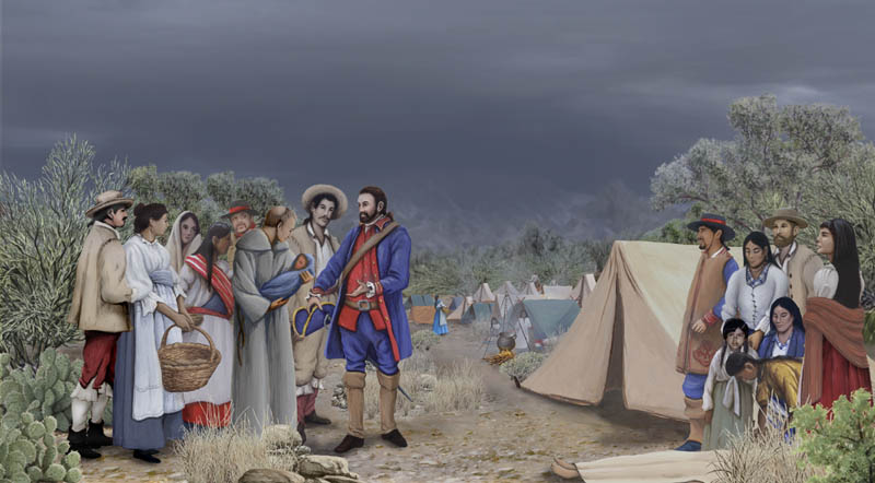 The expedition welcomed large families of mixed ancestry and pregnant women. Franciscan friar Junípero Serra believed “Spanish” or “Hispanicized” women and families would save Spain’s collapsing California missions and help assimilate local Indigenous populations. For this reason, the Anza expedition included 30 soldiers, their wives, and over 100 children, as well as Indigenous guides and servants.