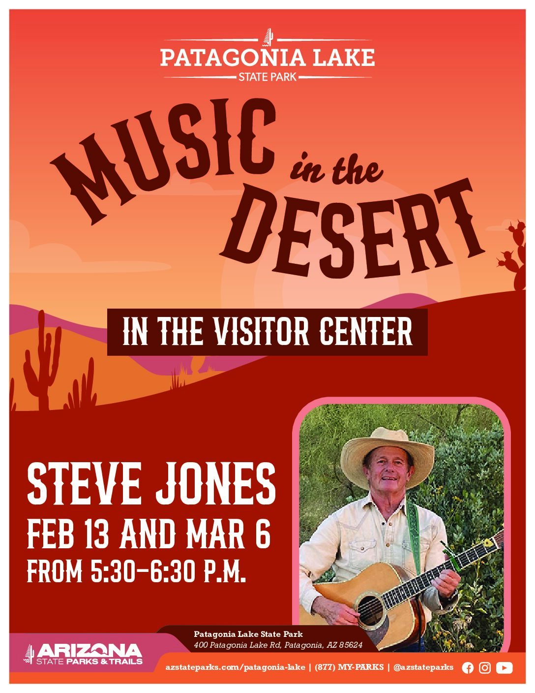 Patagonia Lake State Park invites the community to enjoy an evening of live entertainment with its Music in the Desert series, held in the Visitor Center. Local musician Steve Jones […]