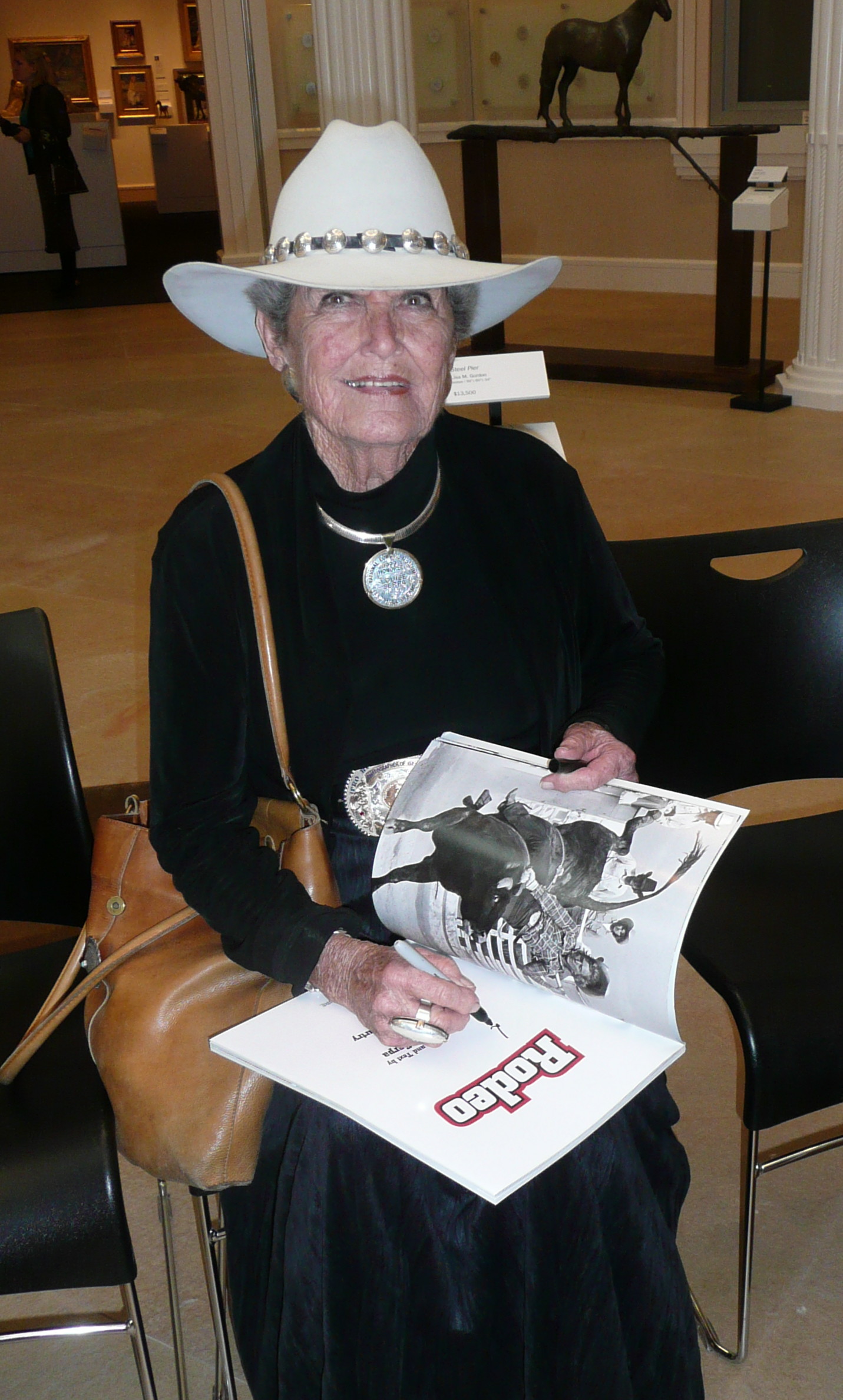 Louise Serpa signing her book, Rodeo, a book of some of her best shots, including many from Sonoita competitions.