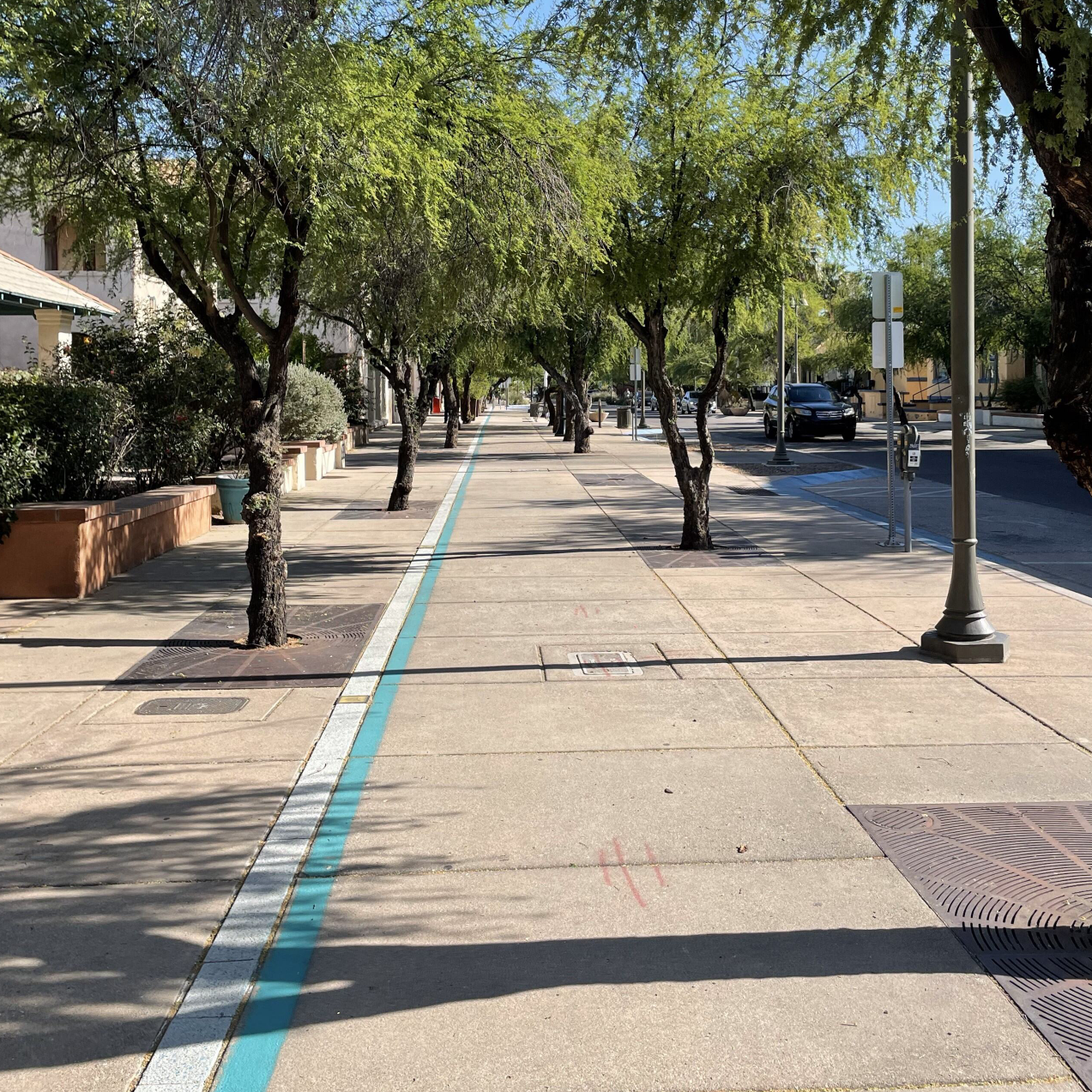 The Turquoise Trail is a historical walking tour of downtown Tucson, where adobe buildings from the 1800s now share the street with towering modern art. The Trail is a project of the Presidio Museum, which offers guided history tours and an App to follow the Trail on your phone (for a fee). The Museum has facilitated a self-guided tour by painting a turquoise stripe along downtown sidewalks with numbered stops along the Trail. Historical plaques, interpretive signs, and art credits provide information about most sights along this trail.