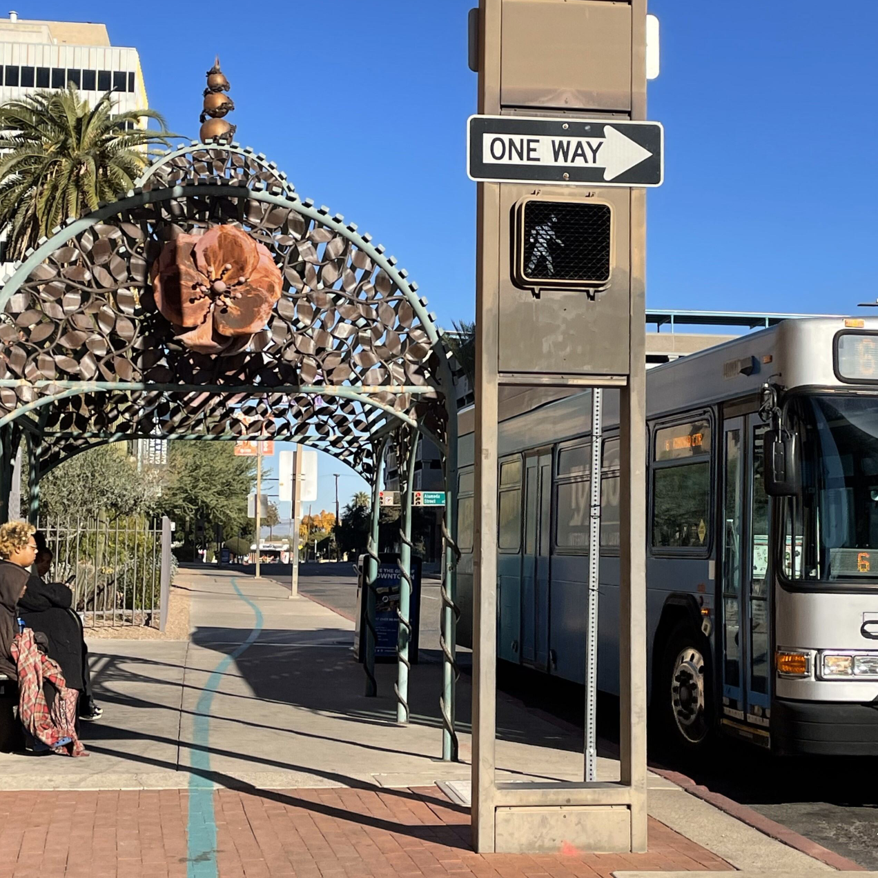 The Trail runs along a paved urban route that is probably wheelchair accessible. There are multiple restrooms and drinking fountains in nearby museums, cafes, and public buildings. The 2.4-mile loop starts at the Presidio Museum, which is near the streetcar stop at Broadway Boulevard and Church Avenue. The Trail can be walked in shorter segments by reboarding the streetcar at the stop of your choice to return to your starting point. The streetcar trip is an art tour itself, displaying public art at 11 of its 22 stops.